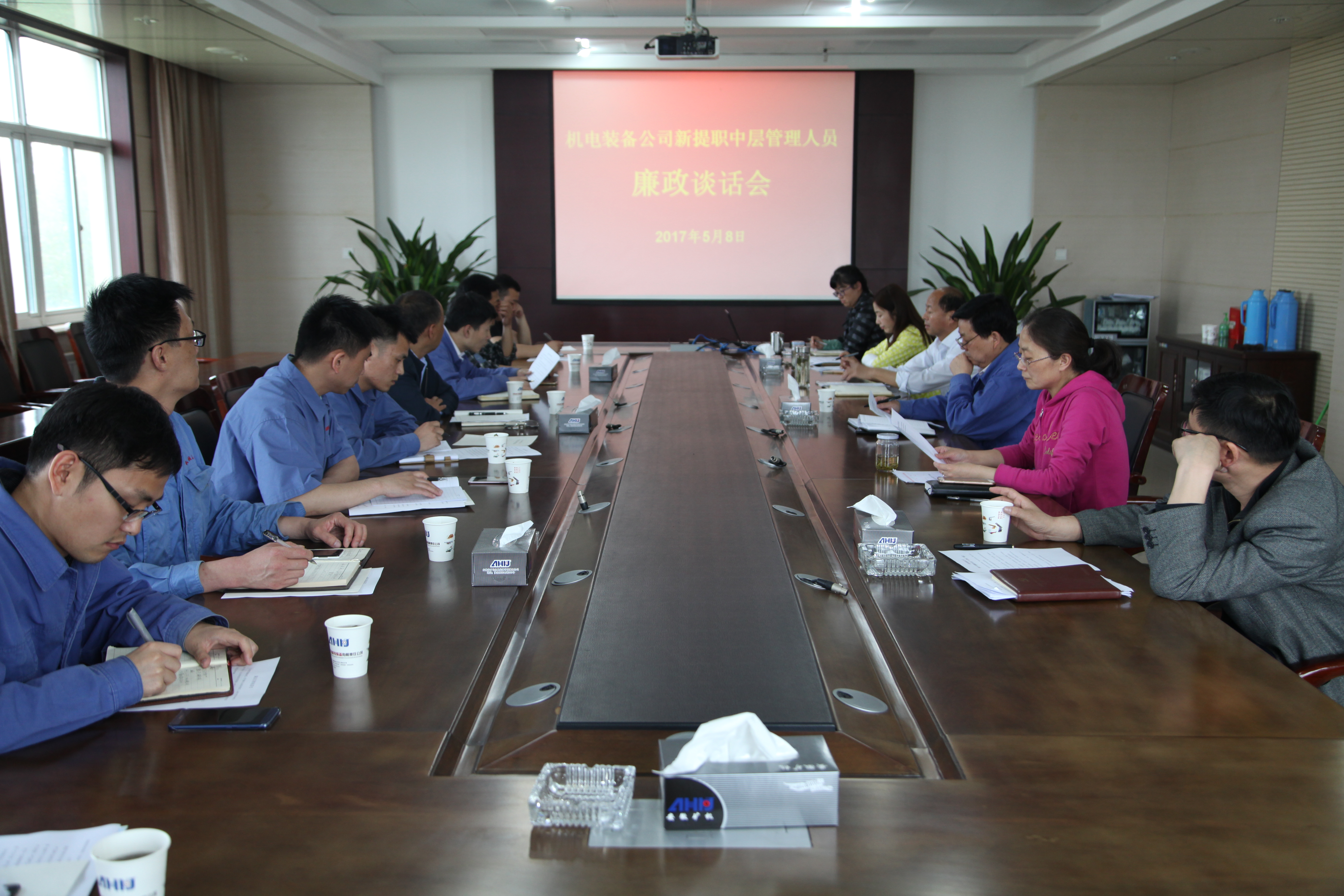 5月8日下午,公司在二樓會議室召開新提職中層管理(lǐ)人員廉政談話會。公司領導李振水、孫君華(huá),各相(xiàng)關部門人員以及9名新提(tí)職中層管理人員(yuán)參加了會議。