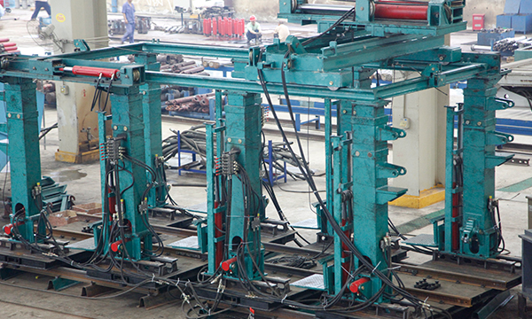 另外,起吊鉤可以橫向縱 向水平移(yí)動,以實現不同工件起吊點距離不同的(de)起吊工作。同時可以對運入井下的部件進行翻轉、平移,滿足安裝及拆卸過程的特殊需求。起吊鉤頭可自由旋(xuán)轉 3600,解決不同工件起吊 點外形不同,吊取不便的難題,起吊作業更加(jiā)方便,靈活。適(shì)應性更加廣泛。 底腳有行走機構,裝置可在軌距為2735mm的軌(guǐ)道上自由行走。 使頂梁、前尾梁等散件可由該裝置(zhì)吊運至主體平車位置,無需(xū)再借助(zhù) 絞車拖拽主體平車,使工作過程更加(jiā)簡便。