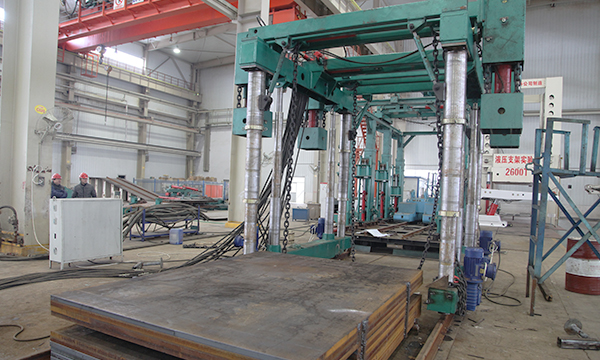 KYX-12×4礦用液壓框架式起(qǐ)吊裝置由底座、三(sān)伸縮立柱、支柱組(zǔ)件、縱梁、端(duān)橫梁、移(yí)動橫梁、調整梁、上鏈盒、下鏈(liàn)盒、滑移座、吊鉤、液壓缸等(děng)組成。底座、三伸縮立柱、支柱組件和縱梁組成左右(yòu)兩片,收到最低位後(hòu)兩片可整體下井。到井下(xià)後,此兩片(piàn)由(yóu)端橫梁和調整梁連接為一個整體。移動橫梁沿縱梁往複移動,滑移座沿橫梁(liáng)往(wǎng)複移動,帶動吊鉤運動以適應不同的起吊位置。上(shàng)、下鏈盒裏都裝(zhuāng)有滑輪,上鏈盒固定,下鏈(liàn)盒(hé)由起吊缸驅動上(shàng)下移(yí)動,從而以(yǐ)鏈條(tiáo)為中介帶動吊鉤(gōu)上下運動。上(shàng)、下鏈盒的作用是擴(kuò)展起吊缸的行程(chéng),把起吊缸的900mm行程擴大到3600mm,以滿足最大起(qǐ)吊高度3500mm的要求。底座裝(zhuāng)有驅(qū)動係統,可帶動整個裝置沿軌道(dào)移動(dòng),移動設(shè)計速度12m/min,誤差±15%。